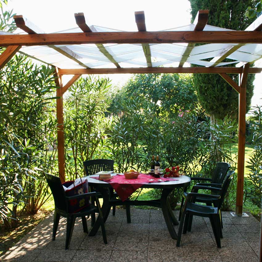 Step outside and relax on your private terrace with a gazebo and a table for outdoor dining. Enjoy the beautiful garden with a large table and a barbecue area, perfect for entertaining. Through a gate, you will arrive in the pool area, where you will find a saltwater pool, a children’s pool, a whirlpool, and more sunbeds and umbrellas.